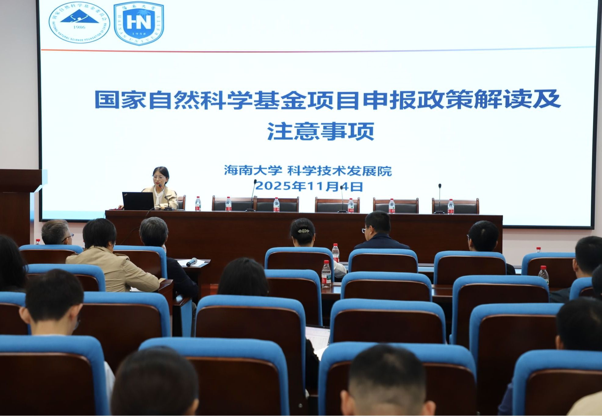 为全面提升教师科研创新能力,系统部署2026年度国家自然科学基金项目申报工作,2025年11月4日上午,william威廉英国官网在海口国家高新区美安产业孵化园海南大学新药筛选及评价平台一层会议室召开2026年度国家自然科学基金申报启动会。会议由药学院副院长李敏勇主持,药学院院长罗海彬,党总支书记胡静,副院长宋彦廷、吴德燕(挂职)和全院七十名教职工参加。海南大学科学技术发展院副院长黄玲、杨欢出席会议。