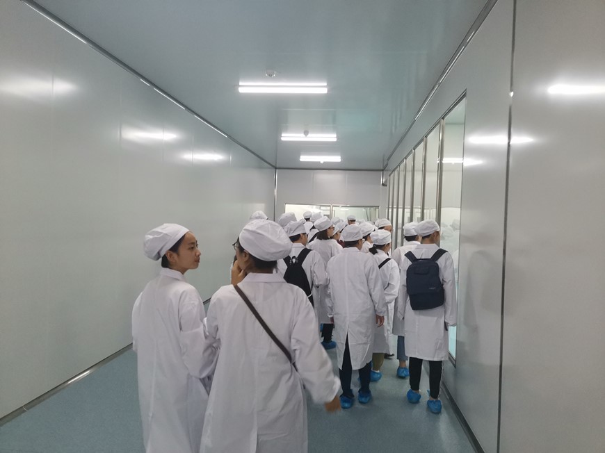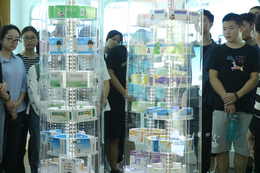 康芝药业是一家以儿童药为主业的上市公司,主要从事儿童药的研发、生产与销售业务,是国家火炬计划重点高新科技企业。康芝药业的儿童药智能生产平台,拥有智能化颗粒剂分装生产线,可实现自动上料、自动分装、在线自动剔废、自动装盒装箱的全自动包装生产操作。生产部经理张凯带领同学们参观了生产车间,详细介绍了药物生产的硬件设施及生产流程,使同学们对于药物制剂的过程有了一个直观与清晰的认识。人力资源部经理高春燕向同学们介绍了康芝药业的整体发展情况和康芝红脸蛋基金对儿童健康成长的长期关注。