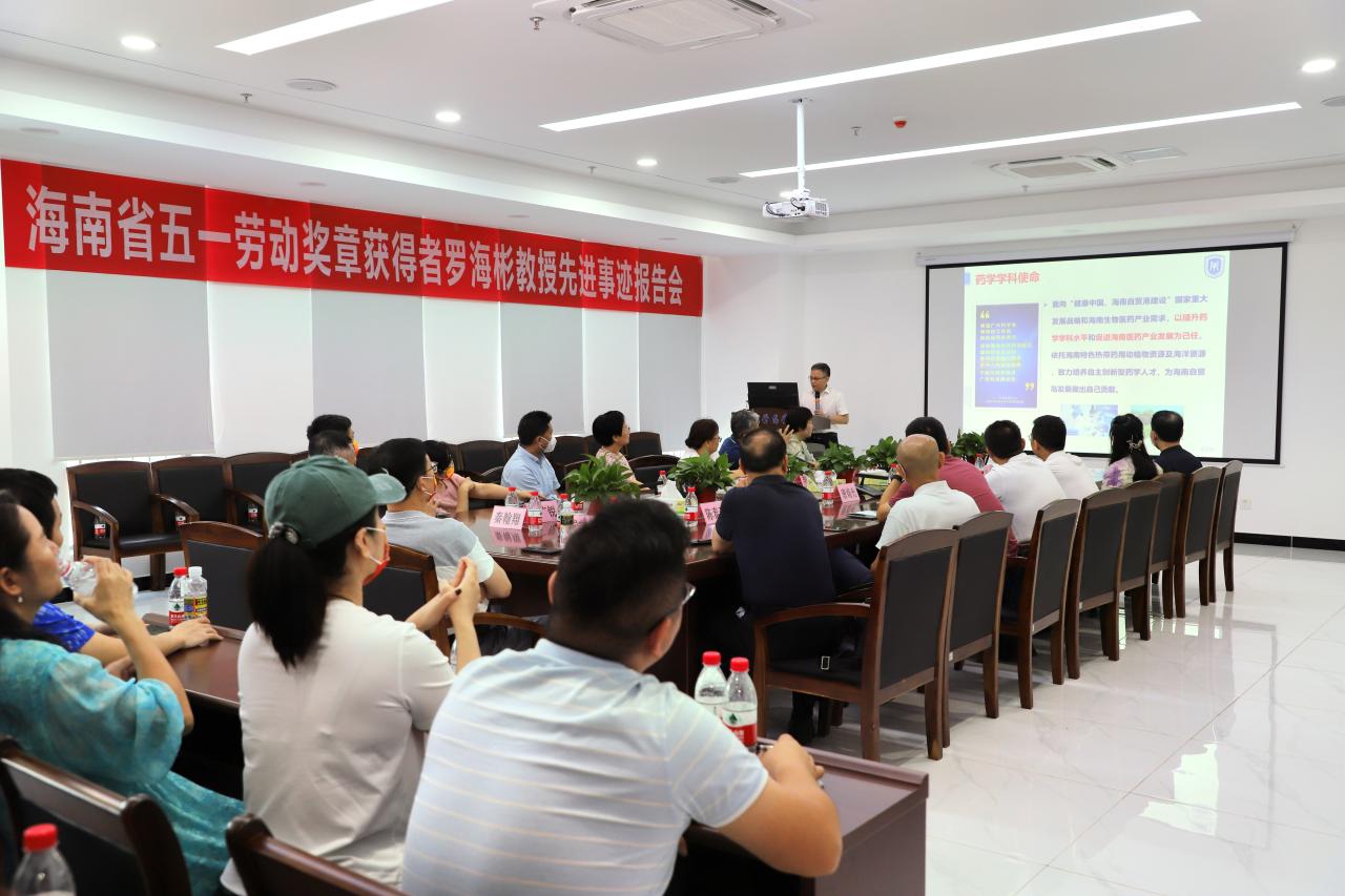 会上,2023年海南省五一劳动奖章获得者罗海彬教授发表了题为《深入调研、重实践,助力自贸港医药产业的高质量发展》先进事迹报告,详细介绍了他到了海南大学以后,对海南生物医药产业发展现状进行深入调研,对我院的学科建设、师资建设、人才培养、科学研究等基本情况进行了介绍。在报告中,罗海彬分享了药学院两年来取得的成绩和创新实践经验,包括在将学院办在园区、新药筛选及评价平台的建设以及与企业合作等方面的经验。他强调,生物医药是海南的重要支助产业,也是未来自贸港建设的重要战略支点,药学院未来会继续深入调研、开展实践,助力海南省生物医药产业的高质量发展。
