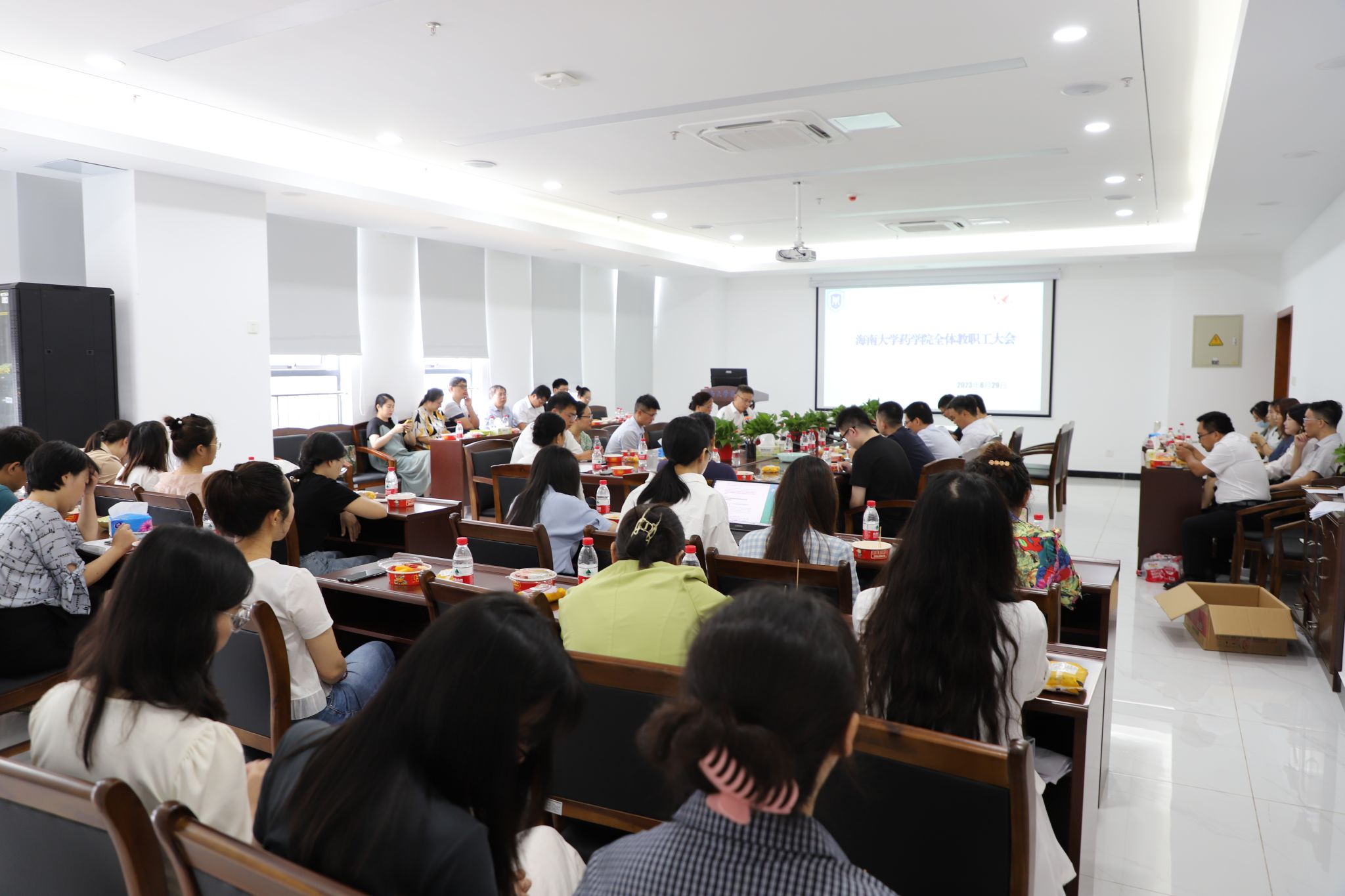 凝心聚力谋发展,笃行不怠向未来。2023年8月29日上午十一点,william威廉英国官网在海口新药谷药学大楼515会议室召开新学期全体教职工大会,传达学校暑期工作会议精神。会议由学院党总支书记胡静主持,院长罗海彬、副院长黄玲、宋彦廷和六十余名教职工参加。