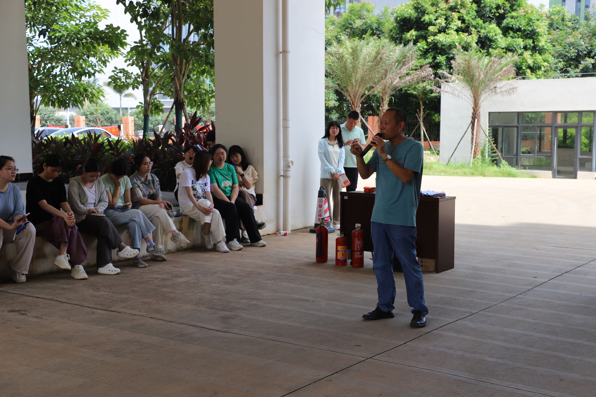 本次培训活动分危化品泄漏应急处置、消防器材正确使用、实际灭火演练及有奖问答等环节。由保卫处王智老师作消防应急处置宣讲,从易燃易爆物品区分、火场逃生要点提示、楼宇环境布局熟知等三个角度强调提升消防安全意识和素养的重要性;实验室与设备管理处林友联老师进行了一场危化品泄漏应急处置的演练;保卫处林德鑫老师做各类消防器材的使用培训。