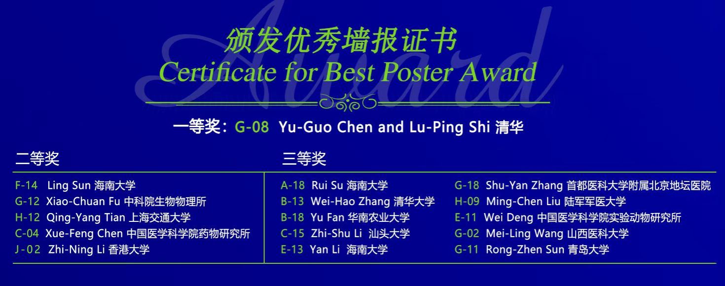 本次大会共计接收墙报187篇,经评委会遴选出16篇优秀墙报并颁发证书,其中我院药学院李宝力副研究员指导的2022级博士生孙皊题为“Antiaging effect of Glibenclamide through targeting mitochondrial key enzymes ENO1-ALDOA”的墙报荣获二等奖,饶勇研究员指导的2022级博士生苏睿、2023级博士生曹文洁题为“Amplifying hepatic L-aspartate levels suppresses CCl4-induced liver fibrosis by reversing glucocorticoid receptor β-mediated mitochondrial malfunction”的墙报荣获三等奖。三位博士研究生同学表示,这次获奖不仅是对他们个人努力的肯定,更是团队合作和导师悉心指导的成果,他们将以此次获奖为契机,继续努力探索,争取获得更大的科研成果。