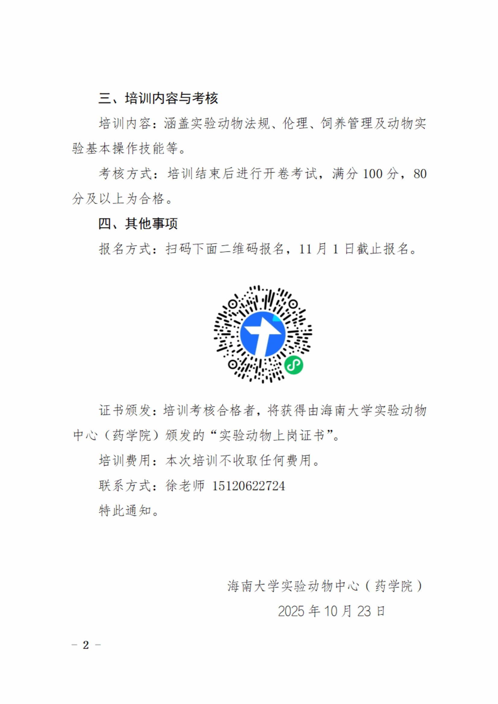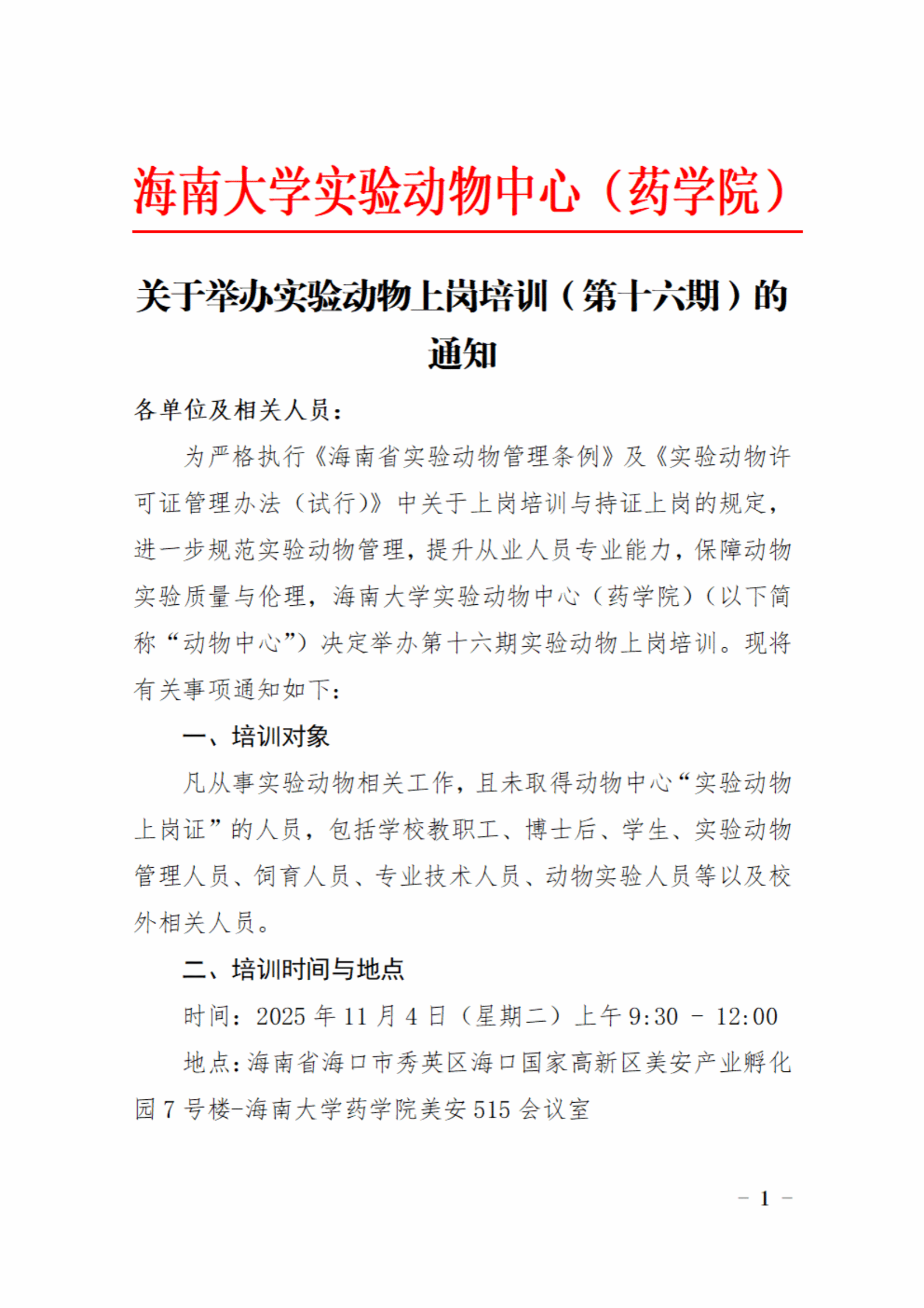 动物中心关于实验动物上岗培训的通知(第16期)