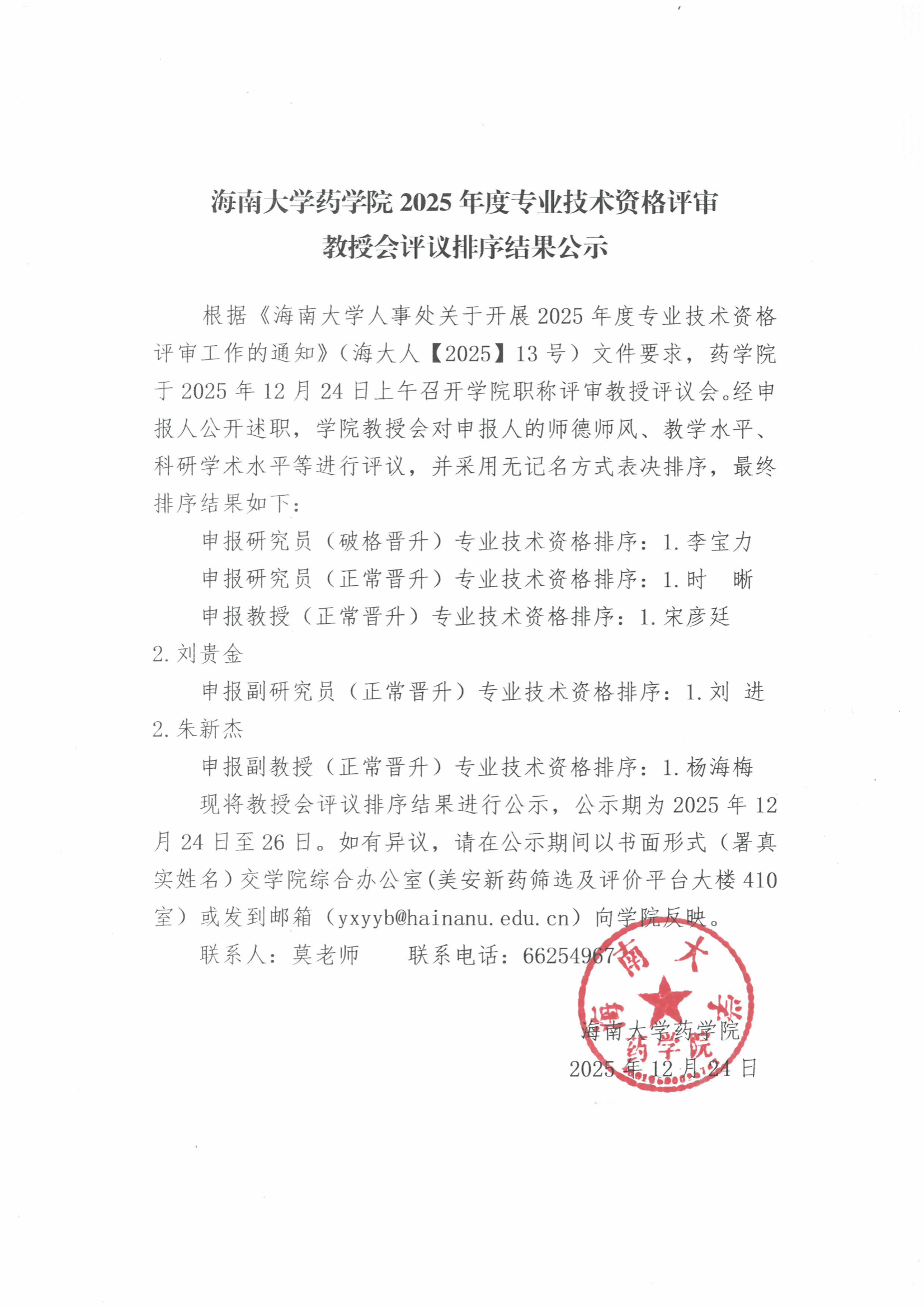 william威廉英国官网2025年度职称评审教授会评议排序结果公示