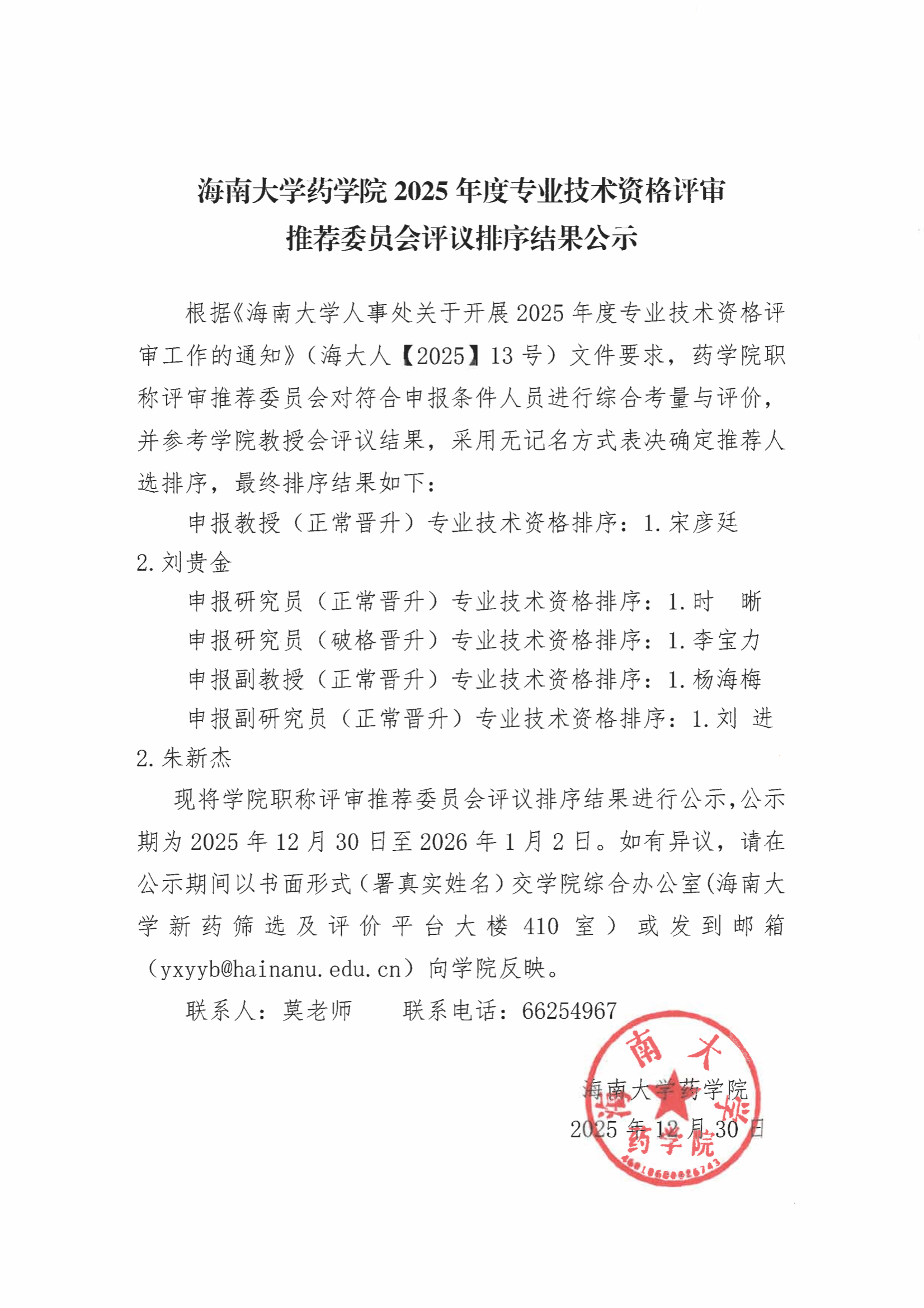 william威廉英国官网2025年度专业技术资格评审推荐委员会评议排序结果公示