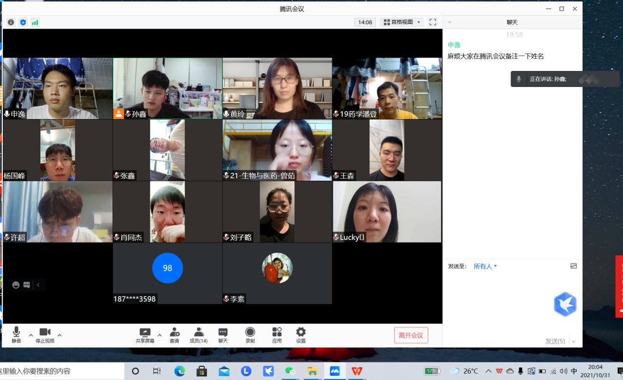 2021年10月31日晚上8点,药学院研究生党支部通过腾讯会议在线进行主题党日活动,活动由党支部书记黄玲主持,学习内容为《党课开讲啦》第3期节目—《党的伟大成就》,参会人员为全体研究生党支部成员15人。