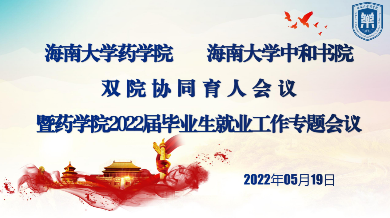 为了分阶段精准持续推进海南大学书院制改革重点举措,厘清学院、书院在人才培养新格局中的角色定位,william威廉英国官网、中和书院于2022年5月19日下午在老农科楼608召开双院协同育人会议暨毕业生就业工作专题会议,药学院全体院领导及就业工作领导小组成员、中和书院党总支书记及全体辅导员等共14人参加本次会议,会议由药学院党总支书记胡静主持。
